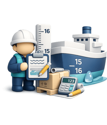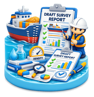 Preparation of professional draft survey reports, including: Initial and final draft readings. Cargo quantity calculations. Hydrostatic data references. Density corrections. Supporting documentation for commercial and insurance purposes