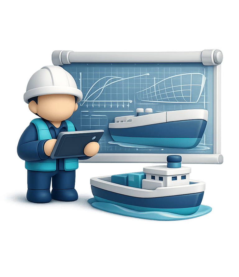 Naval architecture services include vessel technical assessments, stability evaluations, structural analysis, and engineering consultancy for shipowners, shipyards, and maritime operators.